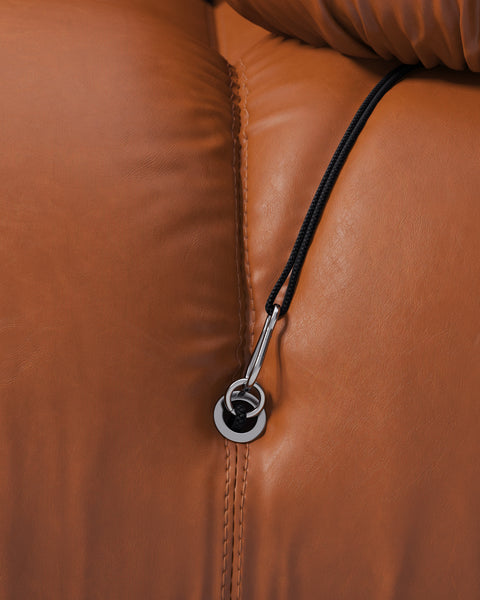 | Modular Instructions | Each section of the Mario Bellini Sofa is modular and is attached with string ties and carabiners. To assemble or rearrange your sofa, simply unclip the carabiners from one ring and attach to a corresponding ring on the module you wish to connect to. |