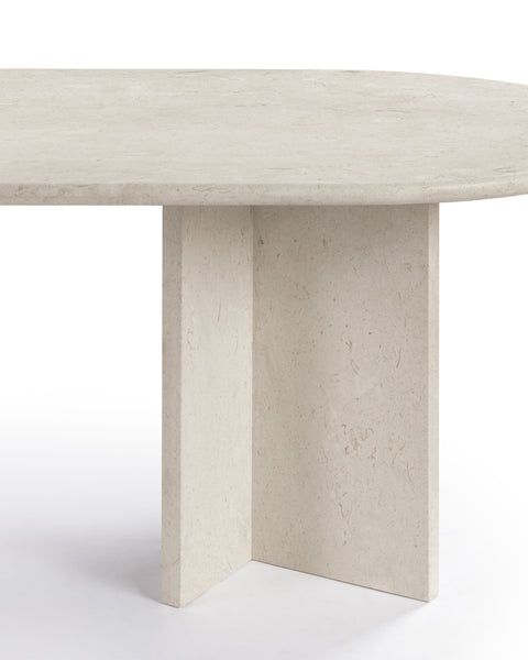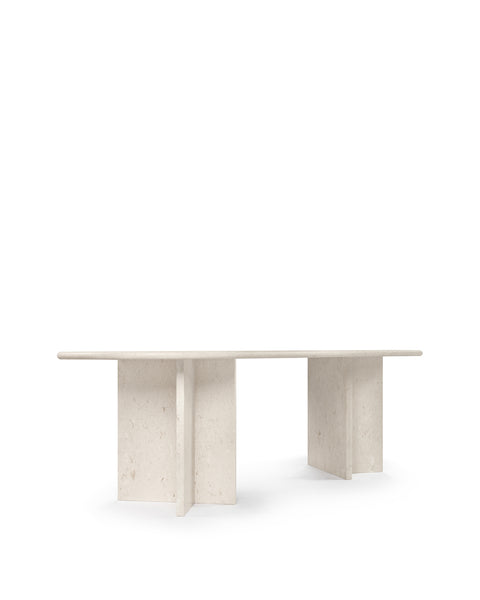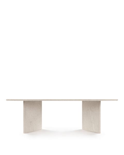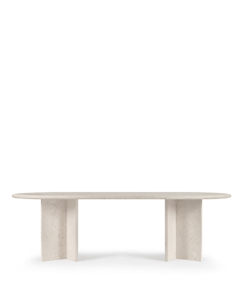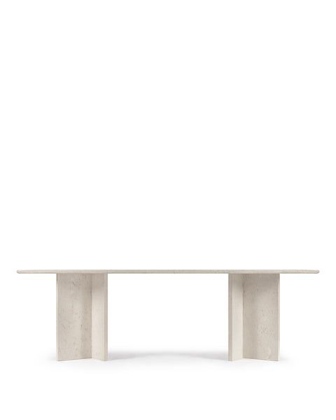 The Maui Dining Table is a versatile and modern centerpiece for any dining room, comfortably seating up to 10 people. Designed with a rounded stone profile, it embodies a sleek contemporary aesthetic that blends with a variety of interiors. The interplay of smooth edges on the surface and angular legs creates a bold, contrasting design that is both functional and artistic.