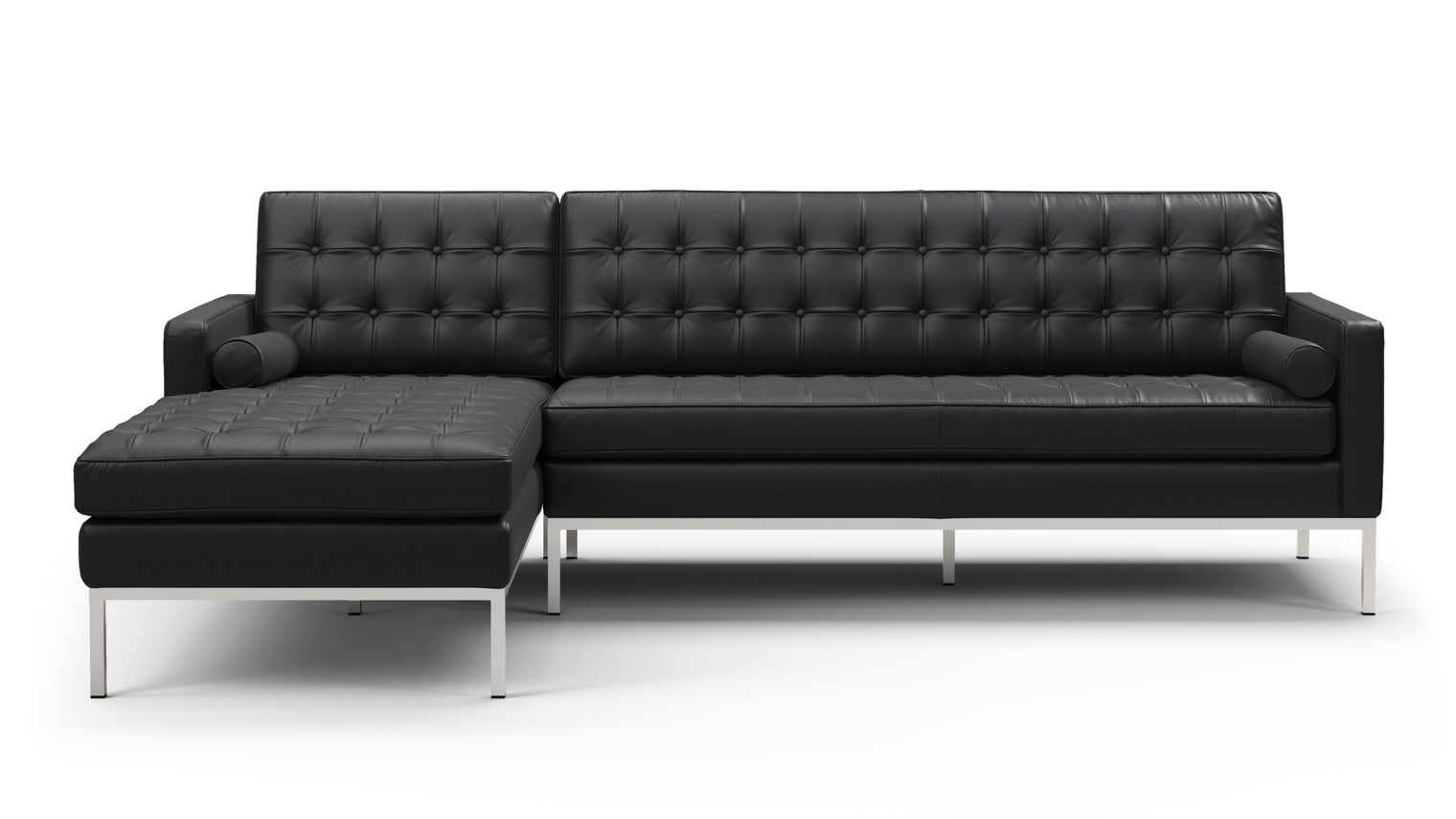 Florence - Florence Three Seater Sofa, Left Chaise, Vintage Black Vegan Leather