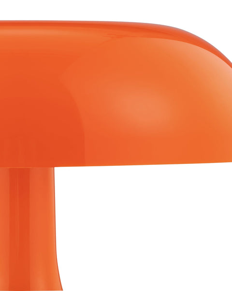 Crafted with meticulous attention to detail, the Nesso Table Lamp showcases impeccable craftsmanship. The smooth and seamless finish of the body reflects the lamp's high-quality construction. Its compact size allows it to be placed on a side table, nightstand, or desk, the bright orange lamp becoming a striking focal point that adds a touch of artistic flair to any space.