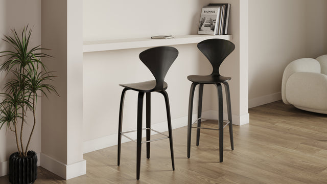 The companion of the iconic dining chair, the Norman Counter Stool is the ultimate in high end design: visually simple but architecturally complex. Made with bent plywood for strength and finished with a rich walnut veneer, this originally mid-century stool is just as at home in a modern, minimalist setting.