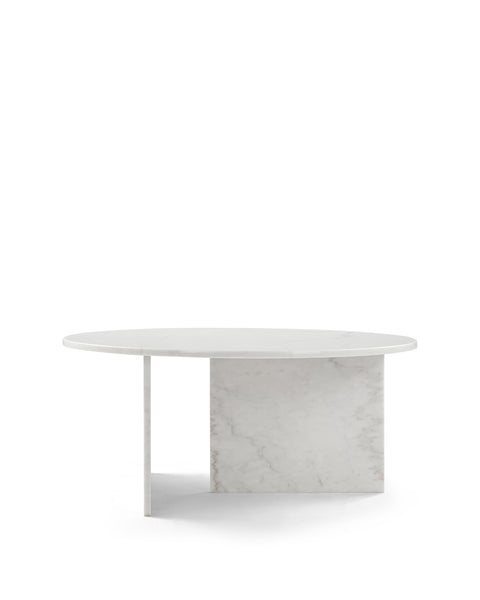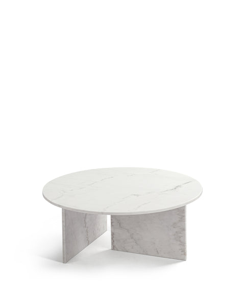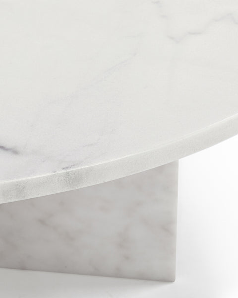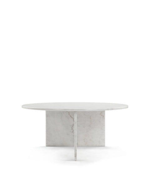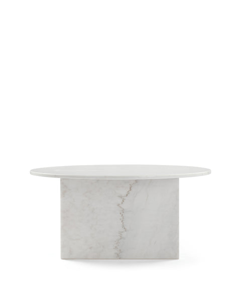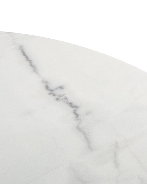 Boasting a functional 35” round top and luxurious polished white marble finish, practicality and style coalesce perfectly in the design of the Olivia coffee table. The elegant round top is counterbalanced visually by the angular base, coming together for a design which is minimalistic in principle yet undeniably striking. Its unfussy form and sleek silhouette emphasizes the materiality of the stone: the depth, luster, and subtle, characterful veining which make marble so sought-after. As such, every Olivia coffee table will be one-of-a-kind, exhibiting the unique characteristics that have been rendered into the stone over hundreds of years; please expect subtle variations in colour, texture, and veining.