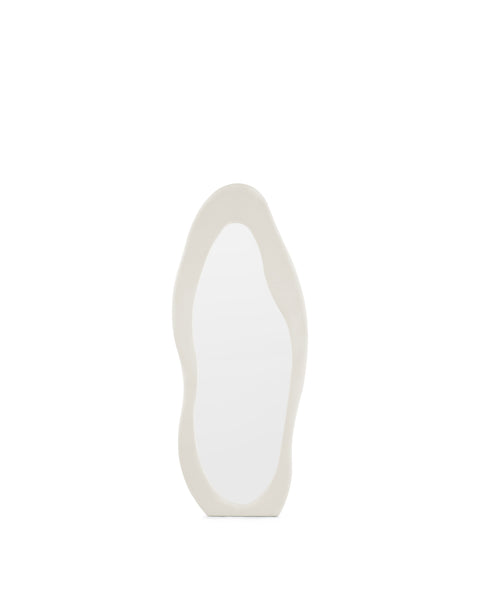 The mirror's frame boasts a unique, flowing silhouette that mimics the natural contours found in nature. Crafted from high-quality materials, the Organic Floor Mirror captures the essence of organic forms, with the deliberate curves and irregular edges creating a visually striking and harmonious aesthetic.