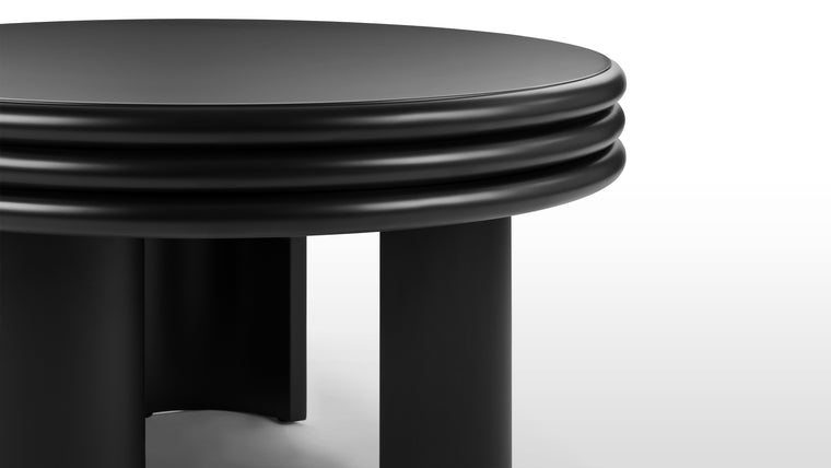 At first glance, the Pascal Round Coffee Table's round silhouette exudes a sense of harmony and balance, inviting you to explore its intricate details. The tabletop, a masterpiece in itself, boasts a distinctive stacked design that adds depth and visual interest.