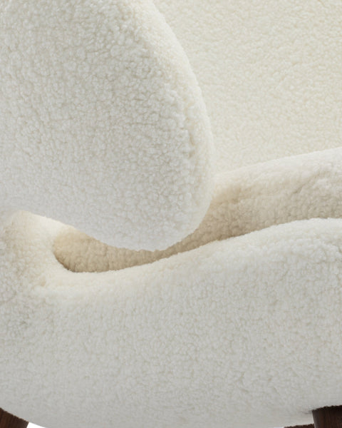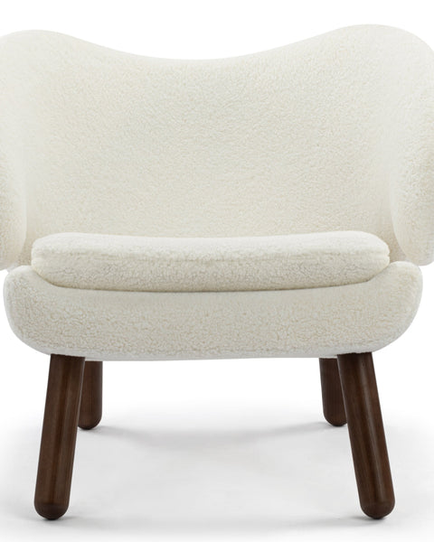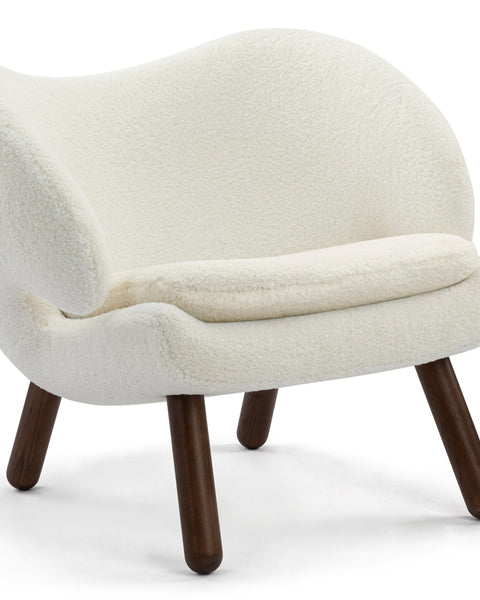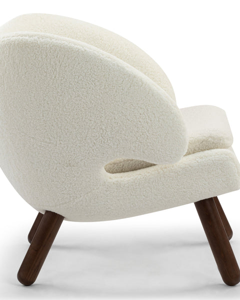Evoking the essence of 1940s design, the Pelican Chair exudes an enduring charm that pays homage to the era's distinct style. With its elegantly contoured frame and the classic sophistication of walnut legs, this chair seamlessly embodies both the inviting coziness of hygge and a sleek contemporary appeal. Serving as a captivating focal point, it effortlessly complements various spaces, from luxurious master suites to inviting living rooms, exuding an aura of timeless elegance.
