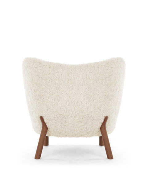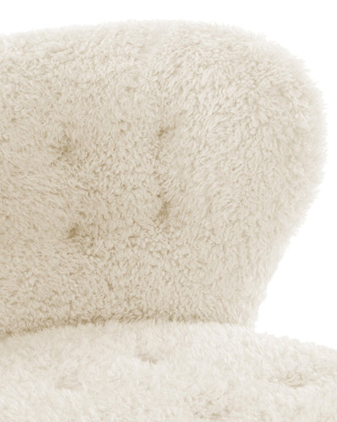 The Petra Chair is designed to provide the utmost relaxation and support. Its plush seat and backrest are upholstered in white long hair sherpa, offering a sumptuously soft and cozy feel. The luxurious upholstery not only adds warmth but also brings a touch of nature indoors, creating a harmonious atmosphere.