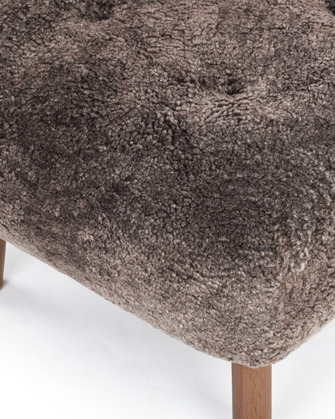 An extension of the Petra lounge chair, the Petra Ottoman embodies the same stylish character and stunningly compact design. Its plush cushion is upholstered in a luxe sheepskin, offering a sumptuously soft and cozy feel. The luxurious upholstery not only adds warmth but also brings a touch of nature indoors, creating a harmonious atmosphere.