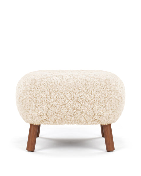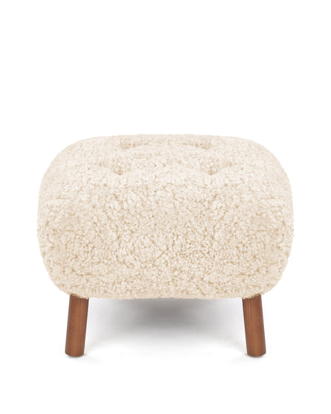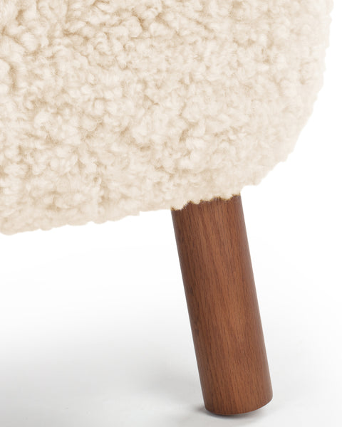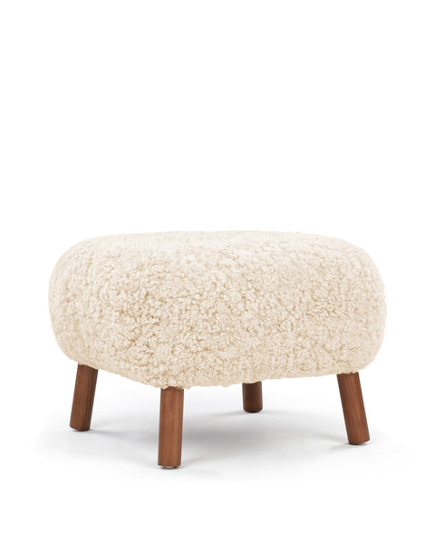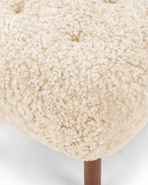 An extension of the Petra lounge chair, the Petra Ottoman embodies the same stylish character and stunningly compact design. Its plush cushion is upholstered in a luxe sheepskin, offering a sumptuously soft and cozy feel. The luxurious upholstery not only adds warmth but also brings a touch of nature indoors, creating a harmonious atmosphere.