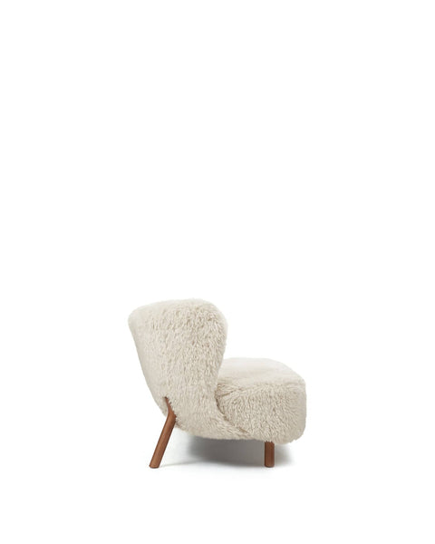 The Petra Sofa is designed to provide the utmost relaxation and support. Its plush seat and backrest are upholstered in white long hair sherpa, offering a sumptuously soft and cozy feel. The luxurious upholstery not only adds warmth but also brings a touch of nature indoors, creating a harmonious atmosphere.