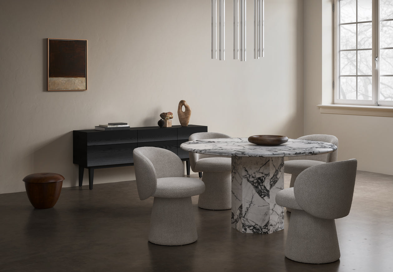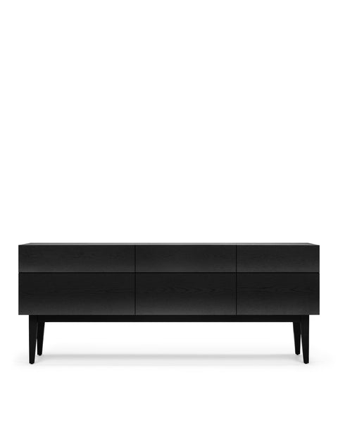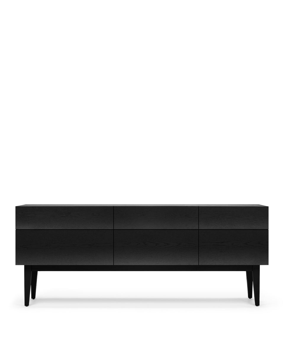 The Reflect Credenza is characterized by its clean lines, minimalist aesthetics, and meticulous craftsmanship. It exemplifies the Scandinavian design philosophy, emphasizing simplicity, utility, and the use of natural materials. The front of the sideboard features a unique, curved design that adds an artistic and visually intriguing element to the piece. This design detail brings a sense of texture and depth to the Credenza, making it a focal point in any room.
