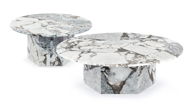 A contemporary take on the pedestal base table, the Saga Coffee Table features a hexagonal plinth base, meaning lots of room underneath to squeeze in extra diners and a clean, linear silhouette.