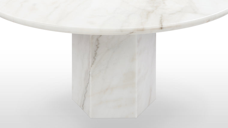A contemporary take on the pedestal base table, the Saga dining table features a hexagonal plinth base, meaning lots of room underneath to squeeze in extra diners and a clean, linear silhouette.