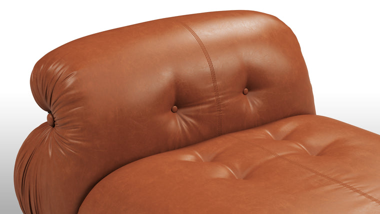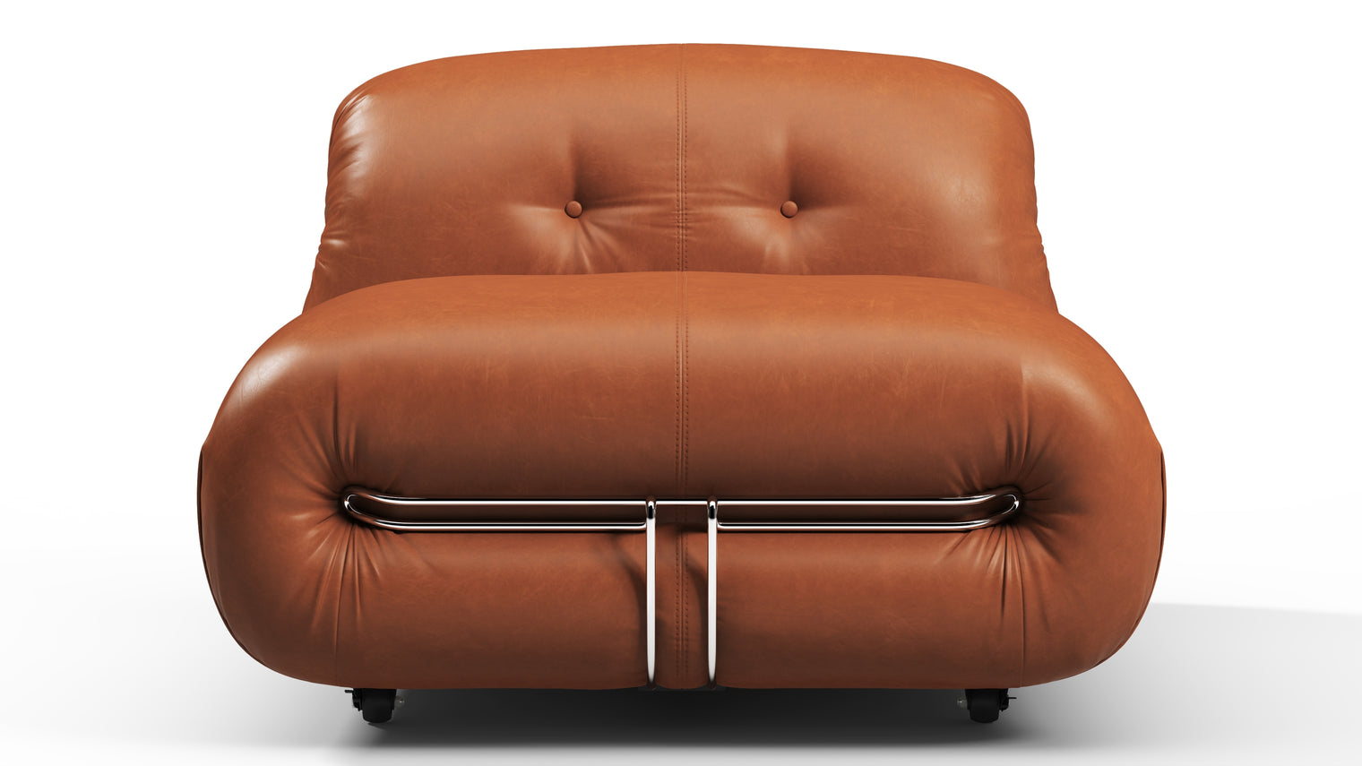 The relaxed and informal design approach of the Soriana collection reflects the 1970s' emphasis on creating comfortable and inviting living spaces. This period witnessed a shift towards more casual and accessible interiors, encouraging a sense of freedom and self-expression within the home. Defined by its voluminous curves and clamp-like exoskeleton, the Soriana’s generous upholstery wraps around its rounded form, finished with buttoning on the seat and backrest for a subtle quilted effect. Explore the full collection for matching pieces.