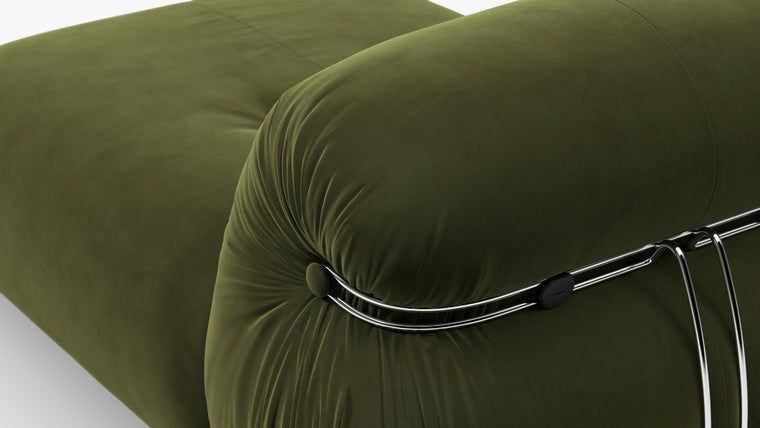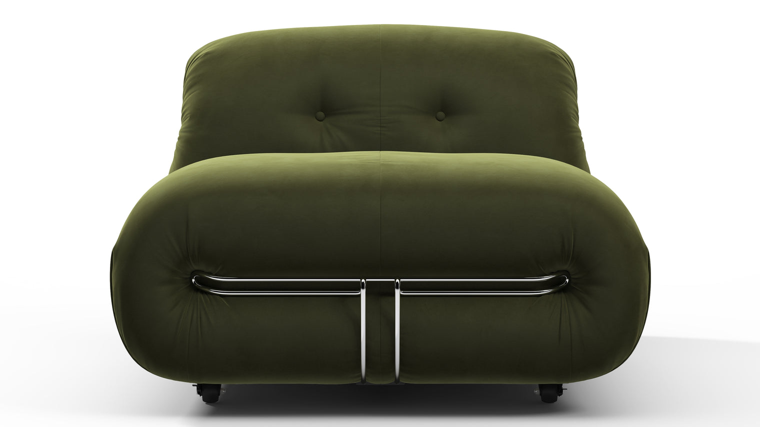 The relaxed and informal design approach of the Soriana collection reflects the 1970s' emphasis on creating comfortable and inviting living spaces. This period witnessed a shift towards more casual and accessible interiors, encouraging a sense of freedom and self-expression within the home. Defined by its voluminous curves and clamp-like exoskeleton, the Soriana’s generous upholstery wraps around its rounded form, finished with buttoning on the seat and backrest for a subtle quilted effect. Explore the full collection for matching pieces.