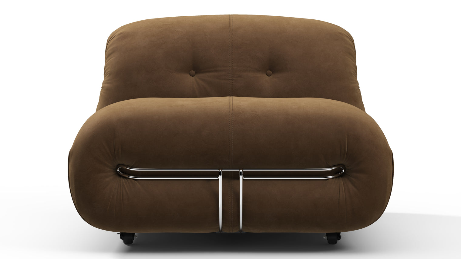 The relaxed and informal design approach of the Soriana collection reflects the 1970s' emphasis on creating comfortable and inviting living spaces. This period witnessed a shift towards more casual and accessible interiors, encouraging a sense of freedom and self-expression within the home. Defined by its voluminous curves and clamp-like exoskeleton, the Soriana’s generous upholstery wraps around its rounded form, finished with buttoning on the seat and backrest for a subtle quilted effect. Explore the full collection for matching pieces.
