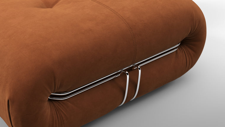 The relaxed and informal design approach of the Soriana collection reflects the 1970s' emphasis on creating comfortable and inviting living spaces. This period witnessed a shift towards more casual and accessible interiors, encouraging a sense of freedom and self-expression within the home. Defined by its voluminous curves and clamp-like exoskeleton, the Soriana’s generous upholstery wraps around its rounded form, finished with buttoning on the seat and backrest for a subtle quilted effect. Explore the full collection for matching pieces.
