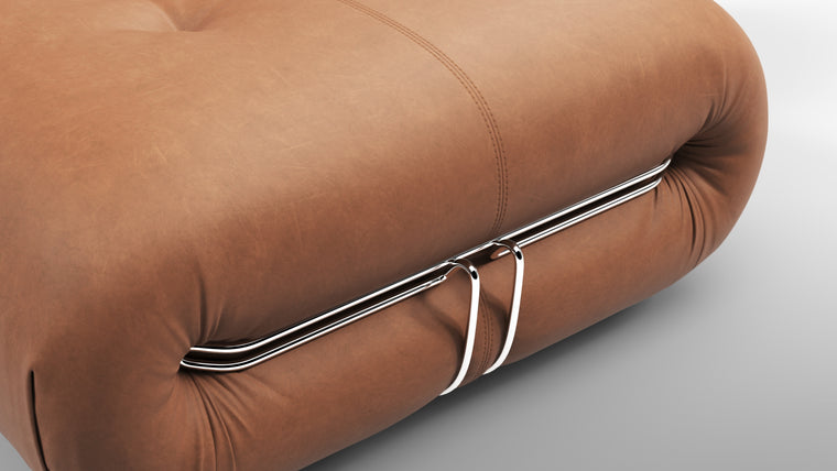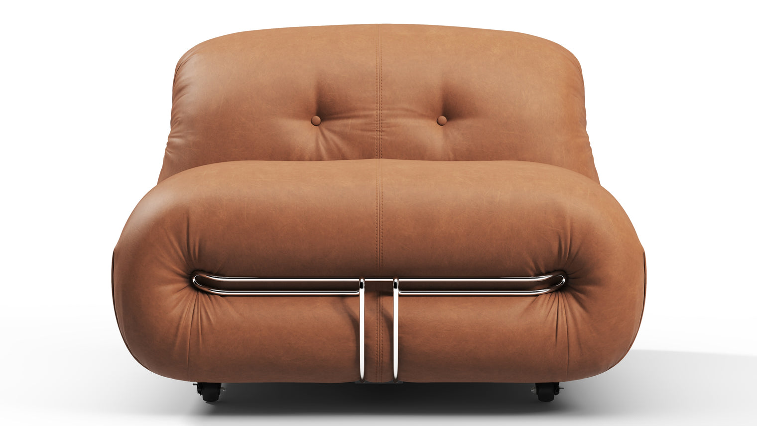 The relaxed and informal design approach of the Soriana collection reflects the 1970s' emphasis on creating comfortable and inviting living spaces. This period witnessed a shift towards more casual and accessible interiors, encouraging a sense of freedom and self-expression within the home. Defined by its voluminous curves and clamp-like exoskeleton, the Soriana’s generous upholstery wraps around its rounded form, finished with buttoning on the seat and backrest for a subtle quilted effect. Explore the full collection for matching pieces.
