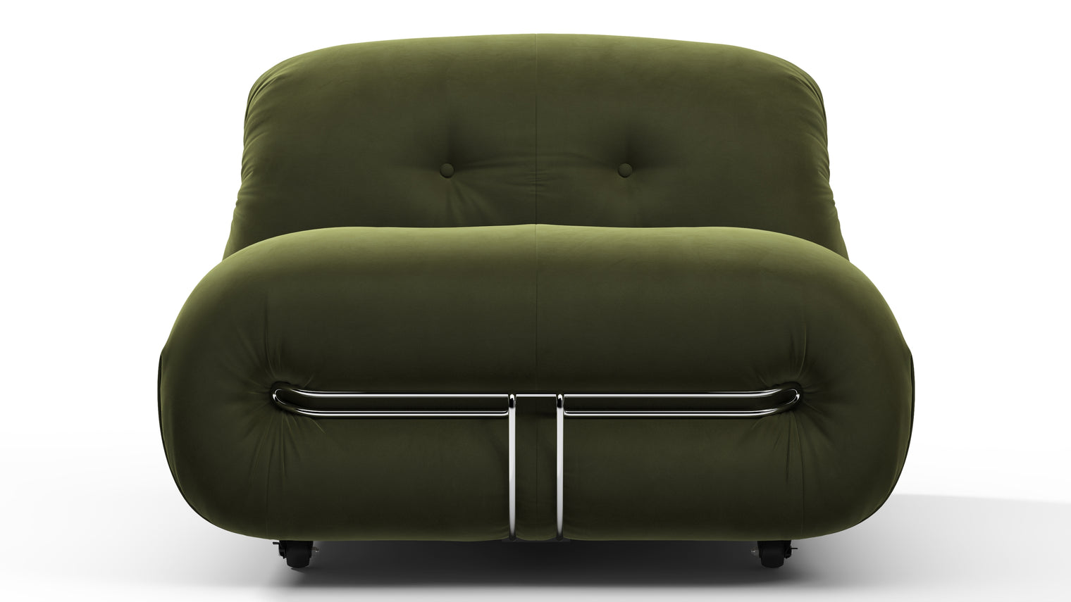The relaxed and informal design approach of the Soriana collection reflects the 1970s' emphasis on creating comfortable and inviting living spaces. This period witnessed a shift towards more casual and accessible interiors, encouraging a sense of freedom and self-expression within the home. Defined by its voluminous curves and clamp-like exoskeleton, the Soriana’s generous upholstery wraps around its rounded form, finished with buttoning on the seat and backrest for a subtle quilted effect. Explore the full collection for matching pieces.