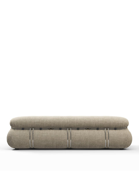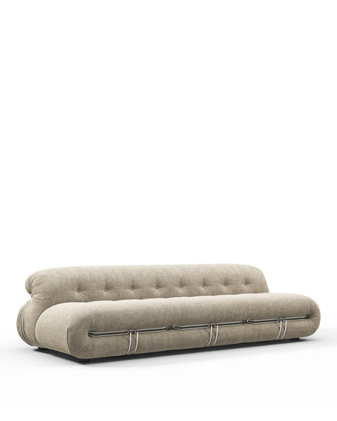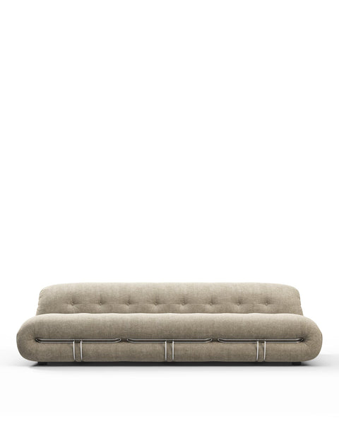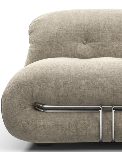 The relaxed and informal design approach of the Soriana collection reflects the 1970s' emphasis on creating comfortable and inviting living spaces. This period witnessed a shift towards more casual and accessible interiors, encouraging a sense of freedom and self-expression within the home. Defined by its voluminous curves and clamp-like exoskeleton, the Soriana’s generous upholstery wraps around its rounded form, finished with buttoning on the seat and backrest for a subtle quilted effect. Explore the full collection for matching pieces.