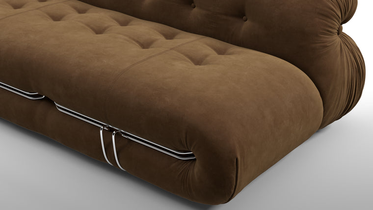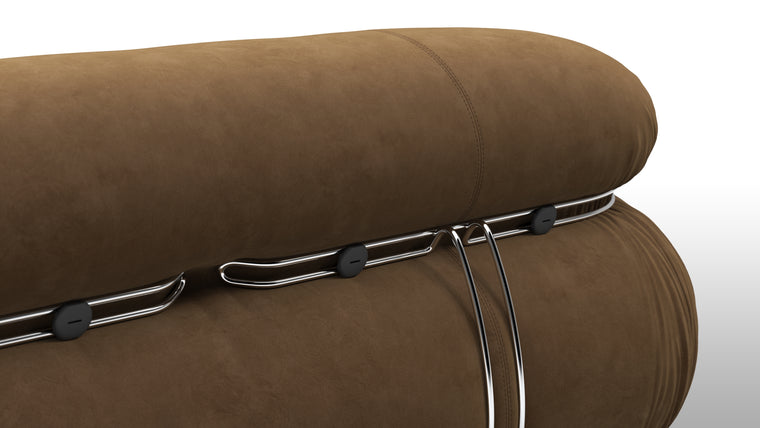 The relaxed and informal design approach of the Soriana collection reflects the 1970s' emphasis on creating comfortable and inviting living spaces. This period witnessed a shift towards more casual and accessible interiors, encouraging a sense of freedom and self-expression within the home. Defined by its voluminous curves and clamp-like exoskeleton, the Soriana’s generous upholstery wraps around its rounded form, finished with buttoning on the seat and backrest for a subtle quilted effect. Explore the full collection for matching pieces.