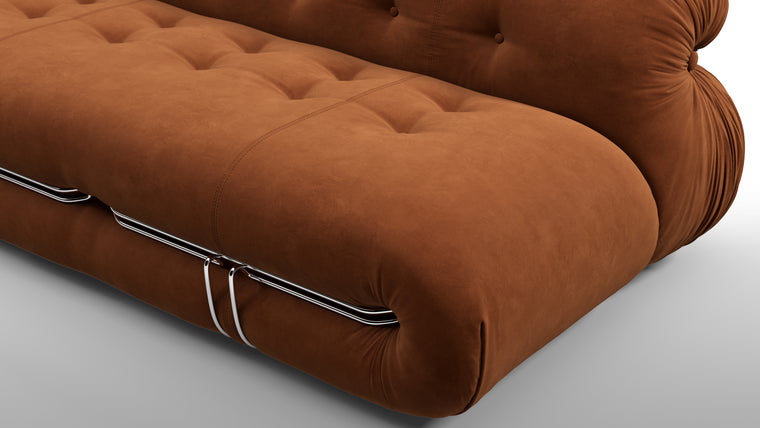 The relaxed and informal design approach of the Soriana collection reflects the 1970s' emphasis on creating comfortable and inviting living spaces. This period witnessed a shift towards more casual and accessible interiors, encouraging a sense of freedom and self-expression within the home. Defined by its voluminous curves and clamp-like exoskeleton, the Soriana’s generous upholstery wraps around its rounded form, finished with buttoning on the seat and backrest for a subtle quilted effect. Explore the full collection for matching pieces.