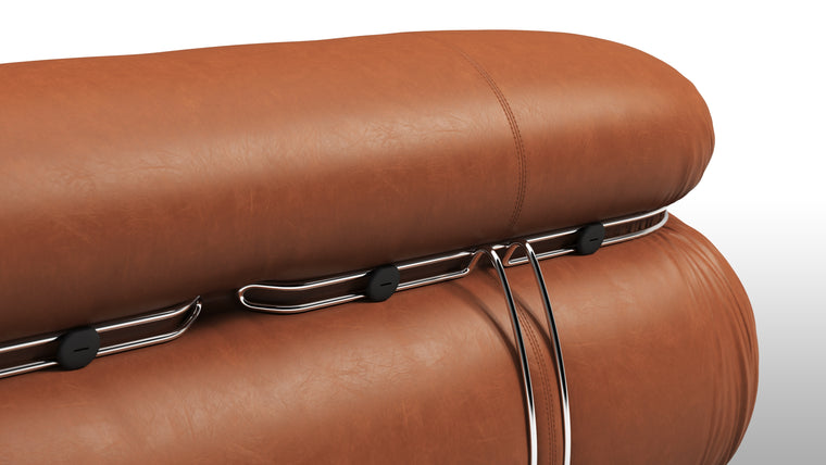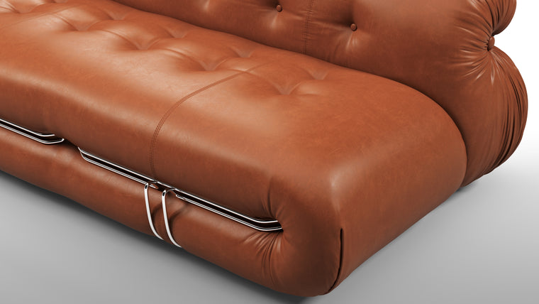 The relaxed and informal design approach of the Soriana collection reflects the 1970s' emphasis on creating comfortable and inviting living spaces. This period witnessed a shift towards more casual and accessible interiors, encouraging a sense of freedom and self-expression within the home. Defined by its voluminous curves and clamp-like exoskeleton, the Soriana’s generous upholstery wraps around its rounded form, finished with buttoning on the seat and backrest for a subtle quilted effect. Explore the full collection for matching pieces.