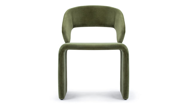 Upholstered in plush velvet, the chair exudes sophistication, available in two rich tones - olive green and burnt orange. Wide, sturdy legs enhance its stability, making it versatile for use in dining rooms, home offices, or as a standout accent chair in living spaces.