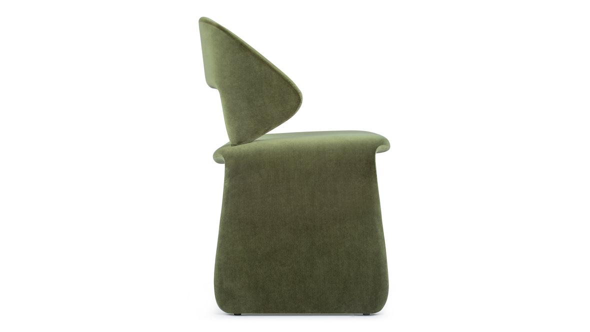 Crafted with soft velvet upholstery and foam padding, the Suit Chair combines rich texture with bold, flowing lines. Its contemporary shape and luxe materials give it a refined yet artistic presence.