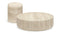 The Toren Coffee Table combines natural travertine beauty with practical design. Featuring a honed surface with unique veining and a recessed lip, it is available in both a low and high style, offering timeless versatility for modern living spaces.
