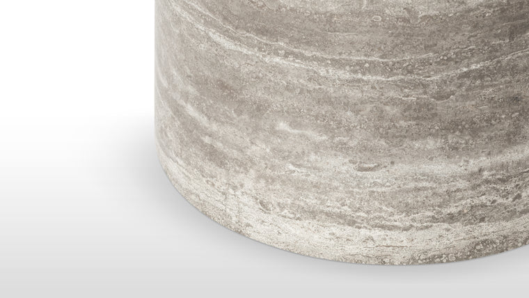 Crafted from exquisite travertine, the Toren Side Table showcases its signature veining, evoking cloud-like patterns across its honed surface. A recessed lip adds both functionality and a touch of style, containing items while enhancing its sleek aesthetic. With a robust pillar design, this versatile piece is available as a low coffee table or a taller side table, blending practicality with timeless elegance.