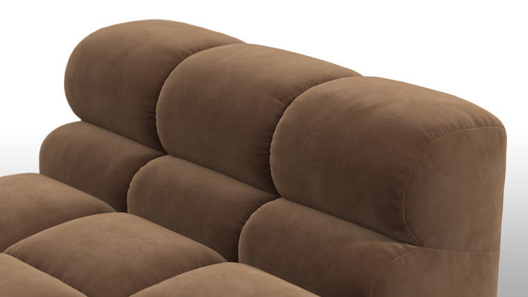 A reimagining of the classic Chesterfield capitonné through the laid-back lens of the 70s,the Tufty sectional is a modern masterpiece. This versatile piece has a striking yet playful look and contemporary appeal. Based around a simple modular concept for ultimate flexibility, the Tufty is a democratic design which can adapt to almost any environment, small city lofts and large entertaining spaces alike.