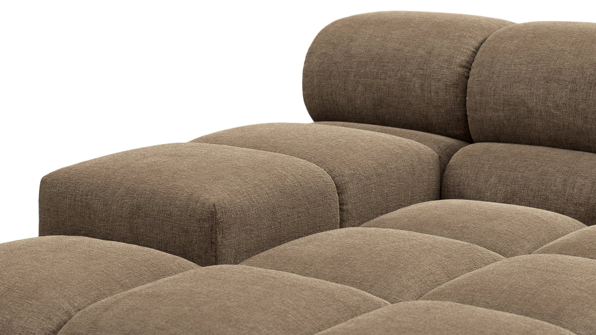 A reimagining of the classic Chesterfield capitonné through the laid-back lens of the 70s,the Tufty sectional is a modern masterpiece. This versatile piece has a striking yet playful look and contemporary appeal. Based around a simple modular concept for ultimate flexibility, the Tufty is a democratic design which can adapt to almost any environment, small city lofts and large entertaining spaces alike.