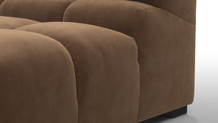 A reimagining of the classic Chesterfield capitonné through the laid-back lens of the 70s,the Tufty sectional is a modern masterpiece. This versatile piece has a striking yet playful look and contemporary appeal. Based around a simple modular concept for ultimate flexibility, the Tufty is a democratic design which can adapt to almost any environment, small city lofts and large entertaining spaces alike.