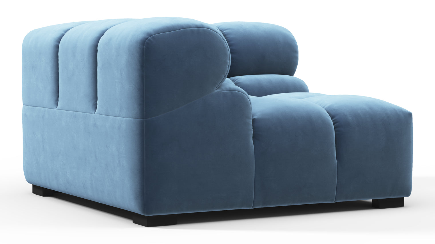 A reimagining of the classic Chesterfield capitonné through the laid-back lens of the 70s,the Tufty sectional is a modern masterpiece. This versatile piece has a striking yet playful look and contemporary appeal. Based around a simple modular concept for ultimate flexibility, the Tufty is a democratic design which can adapt to almost any environment, small city lofts and large entertaining spaces alike.