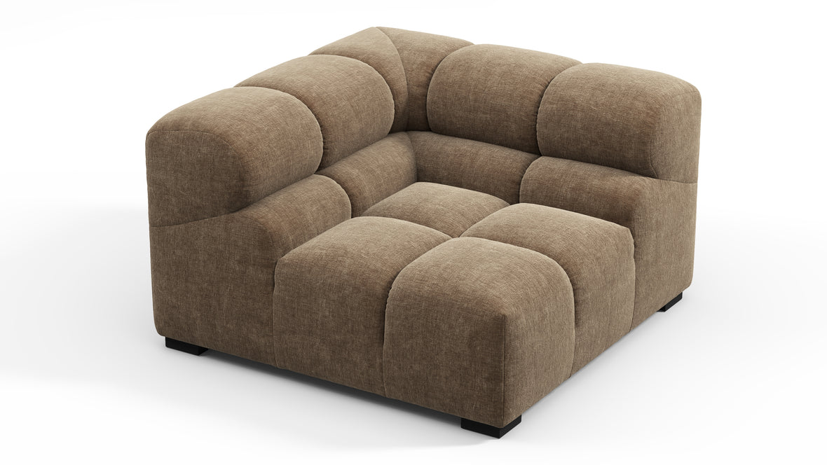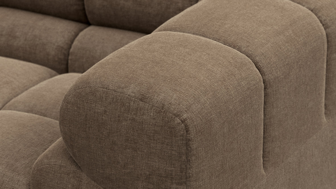 A reimagining of the classic Chesterfield capitonné through the laid-back lens of the 70s,the Tufty sectional is a modern masterpiece. This versatile piece has a striking yet playful look and contemporary appeal. Based around a simple modular concept for ultimate flexibility, the Tufty is a democratic design which can adapt to almost any environment, small city lofts and large entertaining spaces alike.