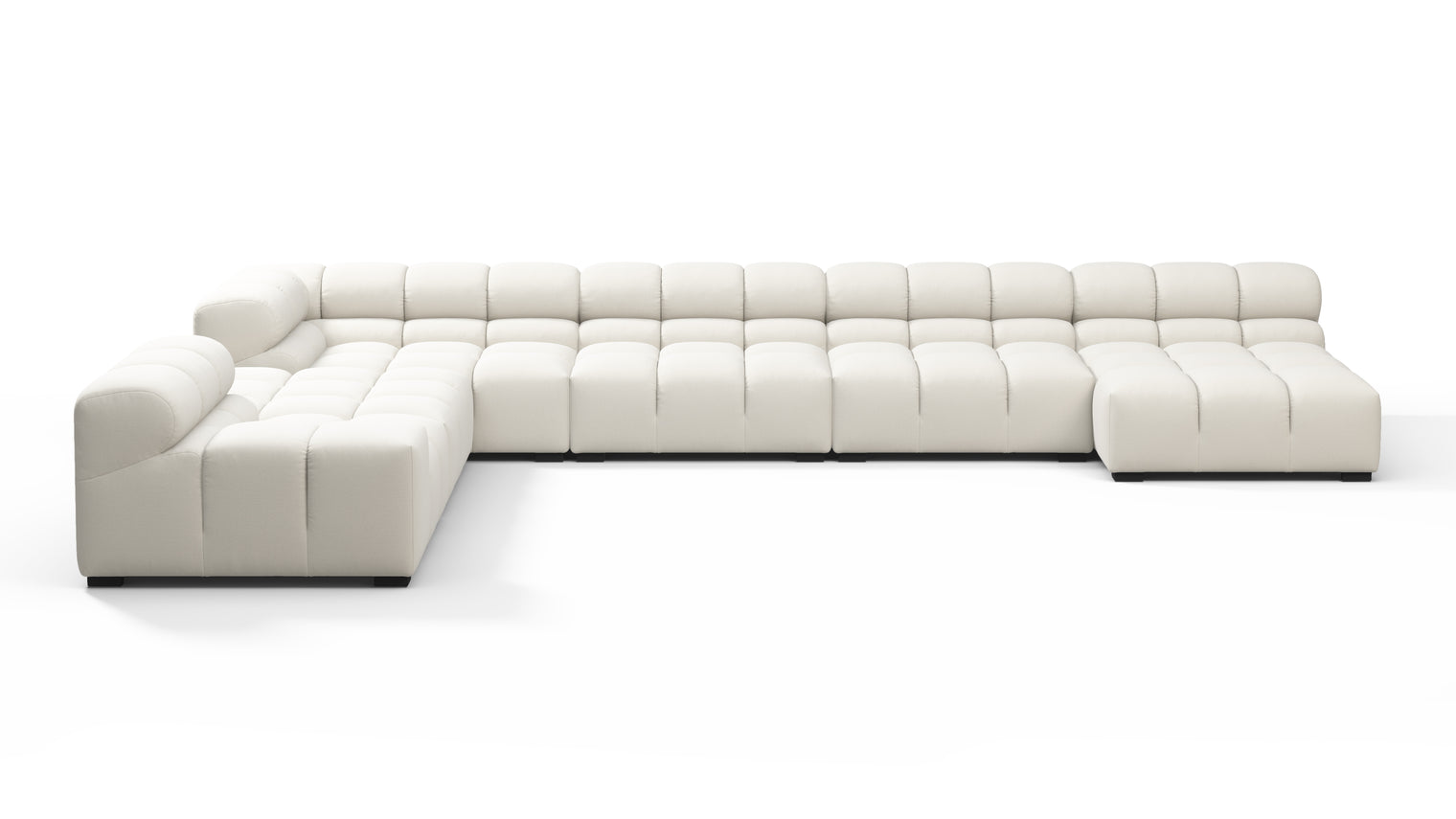 A reimagining of the classic Chesterfield capitonné through the laid-back lens of the 70s,the Tufty sectional is a modern masterpiece. This versatile piece has a striking yet playful look and contemporary appeal. Based around a simple modular concept for ultimate flexibility, the Tufty is a democratic design which can adapt to almost any environment, small city lofts and large entertaining spaces alike.