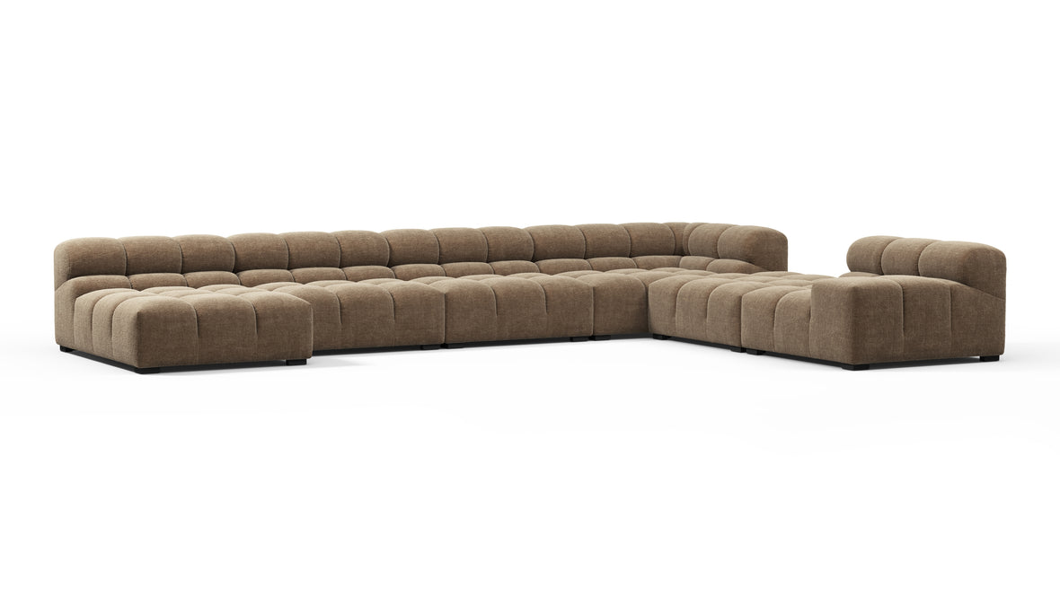 A reimagining of the classic Chesterfield capitonné through the laid-back lens of the 70s,the Tufty sectional is a modern masterpiece. This versatile piece has a striking yet playful look and contemporary appeal. Based around a simple modular concept for ultimate flexibility, the Tufty is a democratic design which can adapt to almost any environment, small city lofts and large entertaining spaces alike.