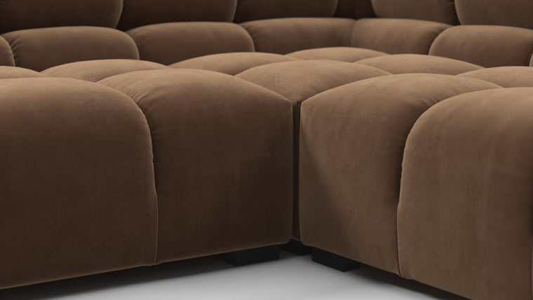 A reimagining of the classic Chesterfield capitonné through the laid-back lens of the 70s,the Tufty sectional is a modern masterpiece. This versatile piece has a striking yet playful look and contemporary appeal. Based around a simple modular concept for ultimate flexibility, the Tufty is a democratic design which can adapt to almost any environment, small city lofts and large entertaining spaces alike.