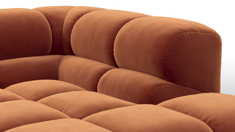 A reimagining of the classic Chesterfield capitonné through the laid-back lens of the 70s,the Tufty sectional is a modern masterpiece. This versatile piece has a striking yet playful look and contemporary appeal. Based around a simple modular concept for ultimate flexibility, the Tufty is a democratic design which can adapt to almost any environment, small city lofts and large entertaining spaces alike.