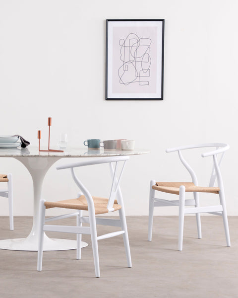 The Wish Chair is an icon of mid-century Danish design due to the distinctive shape of the back-rest support. The chair’s design is a masterpiece of stunning simplicity. With its curved back legs tapering to join the back rail, its silhouette remains a well-loved design. The Wish Chair is a minimalist’s delight, with a light but strong and elegant frame coupled with a paper-cord seat that’s comfortable to sit on.